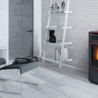 Termostufa a pellet che alimenta i termosifoni e i pannelli radianti a pavimento, per riscaldare tutta la casa.